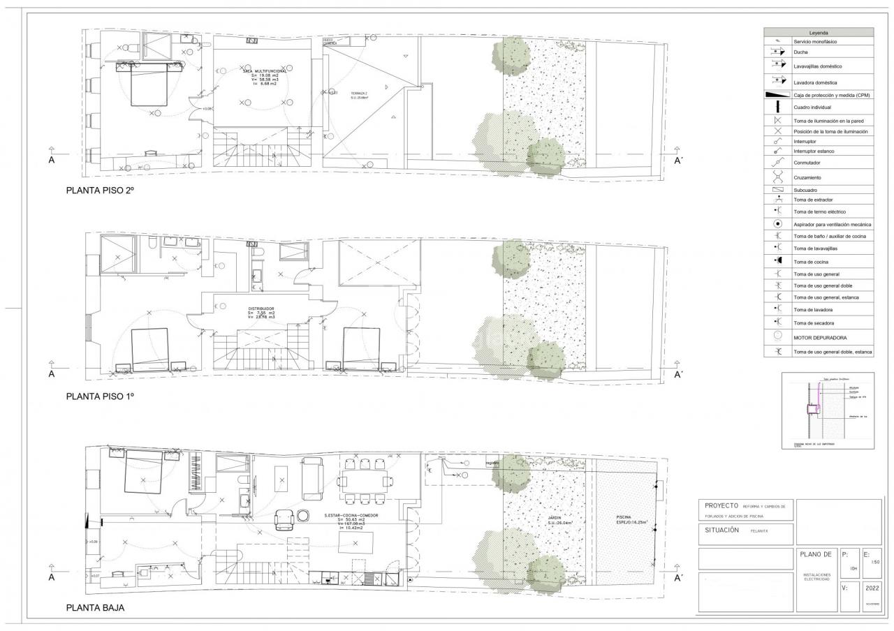 Im Obergeschoss: Flur mit Zugang zu einem Hauptschlafzimmer mit eigenem Bad und Ankleidezimmer, einem zweiten Schlafzimmer mit eigenem Bad und einem offenen Wohnzimmer, beide mit Zugang zu einem Balkon mit Blick auf den Garten und den Pool.
