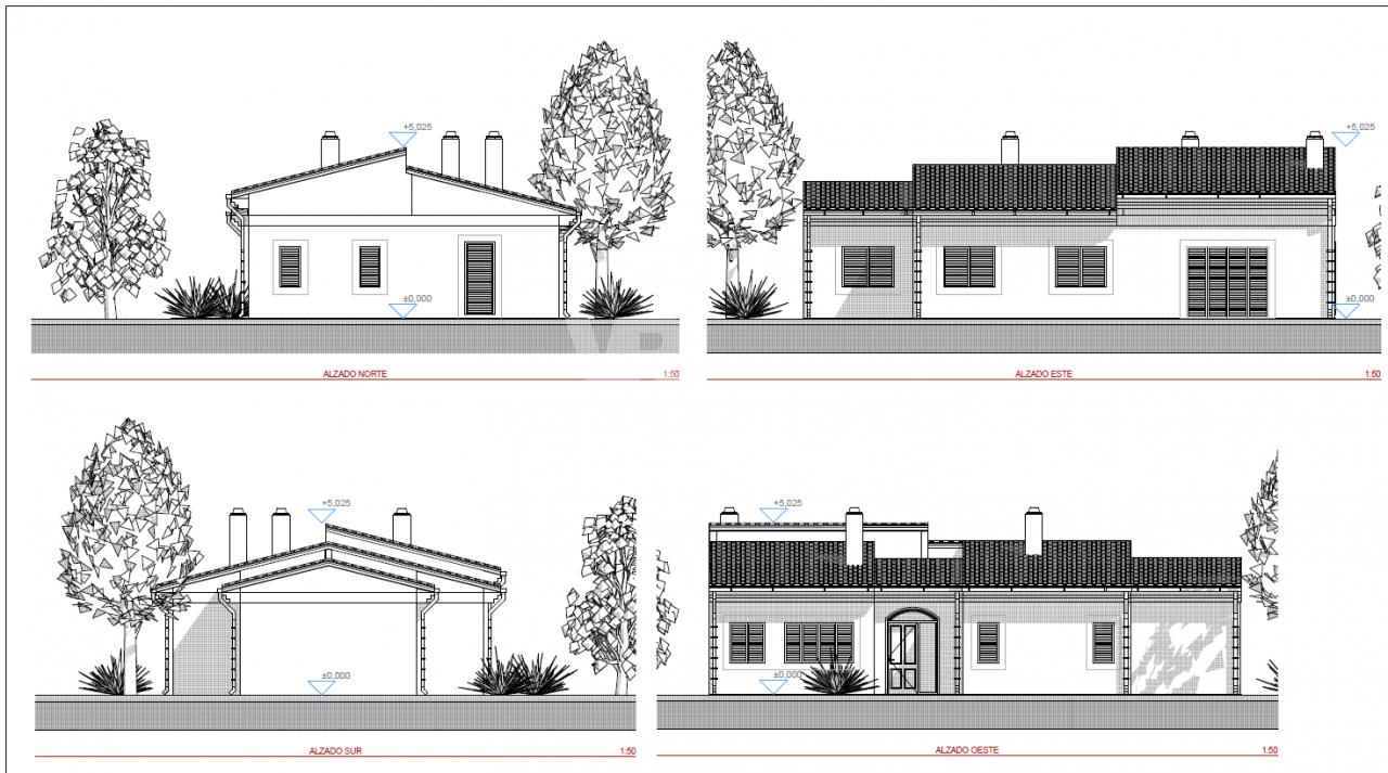 There is a basic project and a licence available for the construction of a 150 m2 house with 3 bedrooms, 2 bathrooms (one of them with shower and the other one with bathtub), a living-dining room, a kitchen with pantry and a swimming pool of 32m2.