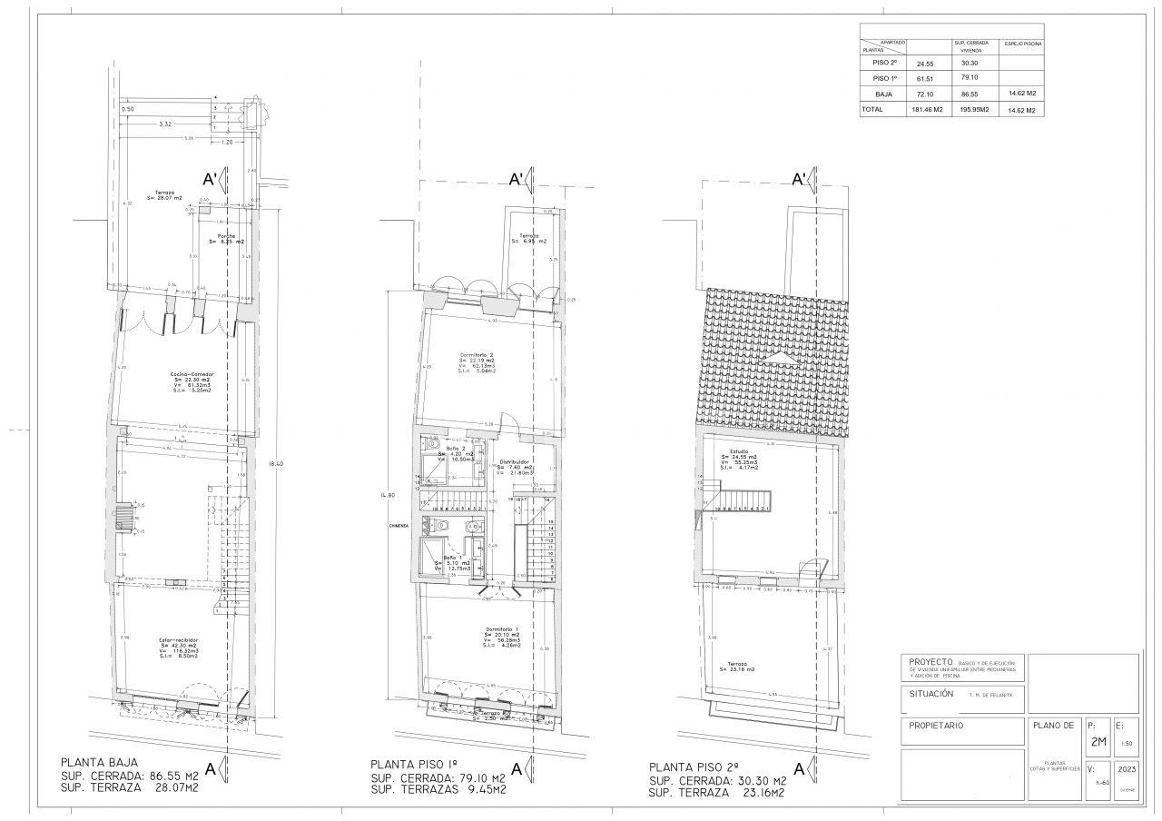 On the first floor of about 79 m2, there is a distribution area, 2 bedrooms with fitted wardrobes and bathroom en suite. One of the bedrooms has a terrace of about 7 m2 and the other one has a balcony.