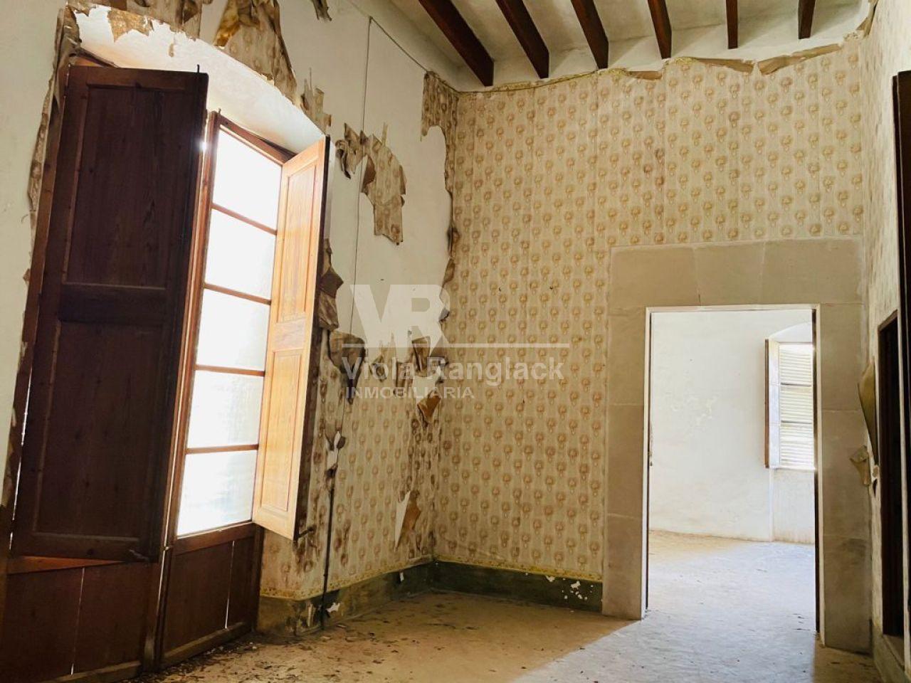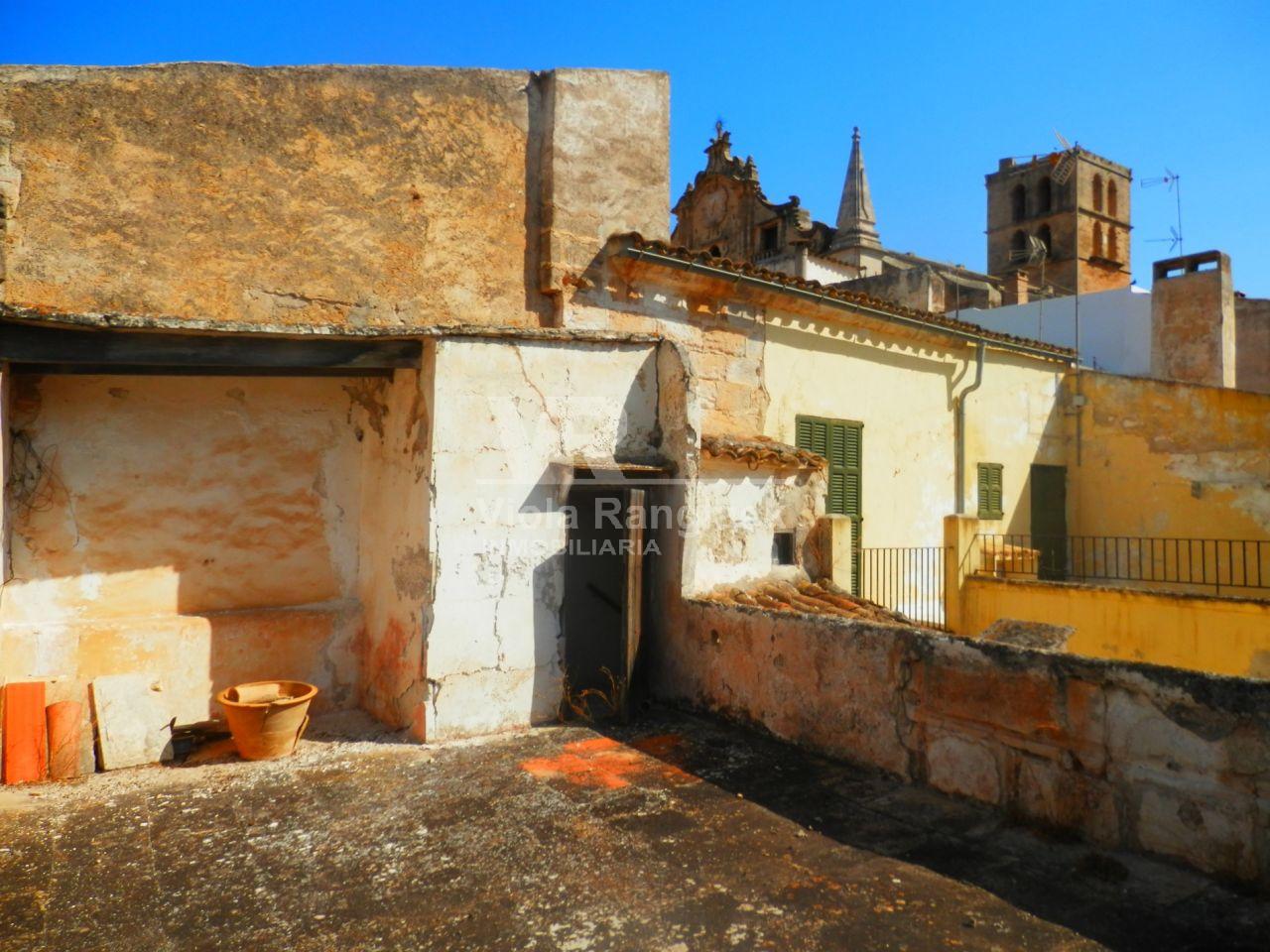 Townhouse to be reformed in Felanitx in a very good location in the center next to the main church, in the old town. Situated at a corner with main entrance from both streets. There is a built up surface about 349m2 on a plot of approx. 144m2. The house presents several old architectural elements of Majorcan style and is divided into two apartments: ground floor and first floor, with the possibility to establish 2 or 3 commercial premises. It has a garage, 3 guest toilets and about 5 bedrooms and another few rooms. There is also a small patio and a terrace of 20m2 with view of the main square and the Calvario mountain.