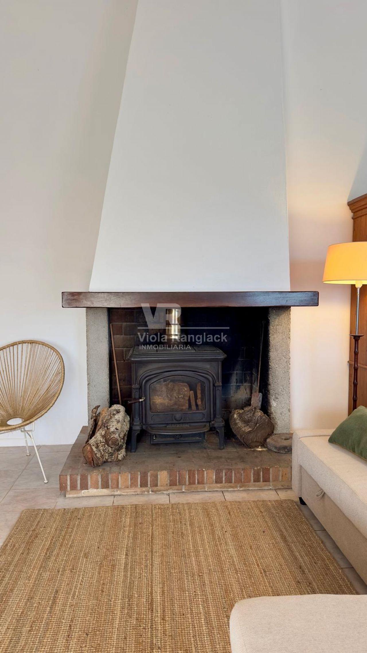 La casa tiene un gran salón con chimenea, cocina y un jardín trasero.