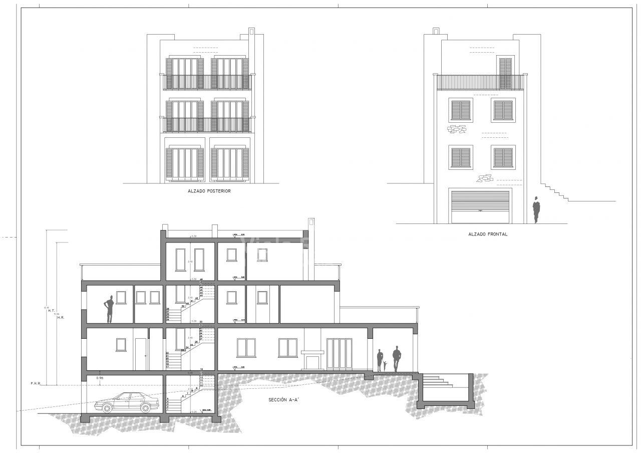 En el proyecto se describe una vivienda unifamiliar de unos 250m2 , 3 alturas y un sótano a modo de garaje.