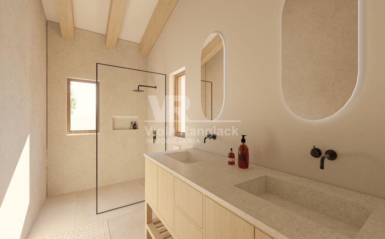 Projekt: Das Haus ist in zwei Ebenen unterteilt, das Erdgeschoss besteht aus 1 Eingangshalle, 1 großes Wohn-Esszimmer von 47 m2, 1 Speisekammer, 1 WC, 1 Waschküche und 1 Schlafzimmer mit Bad en suite.