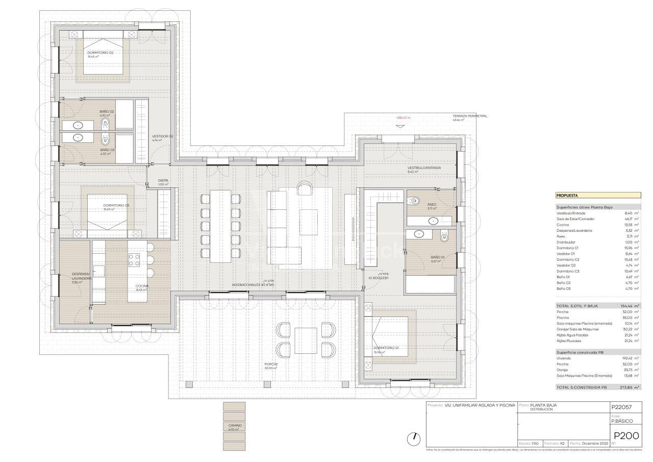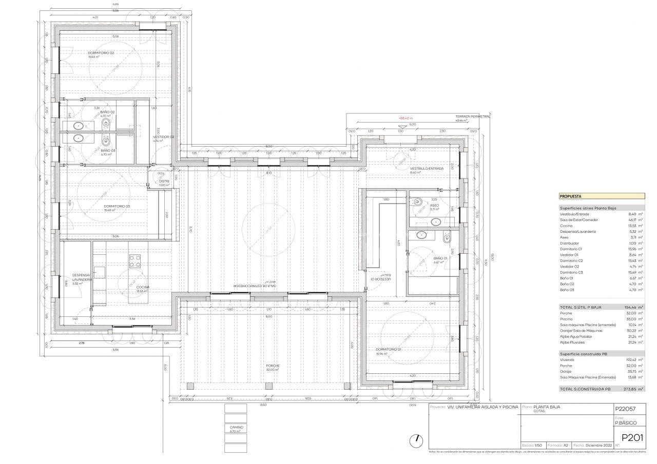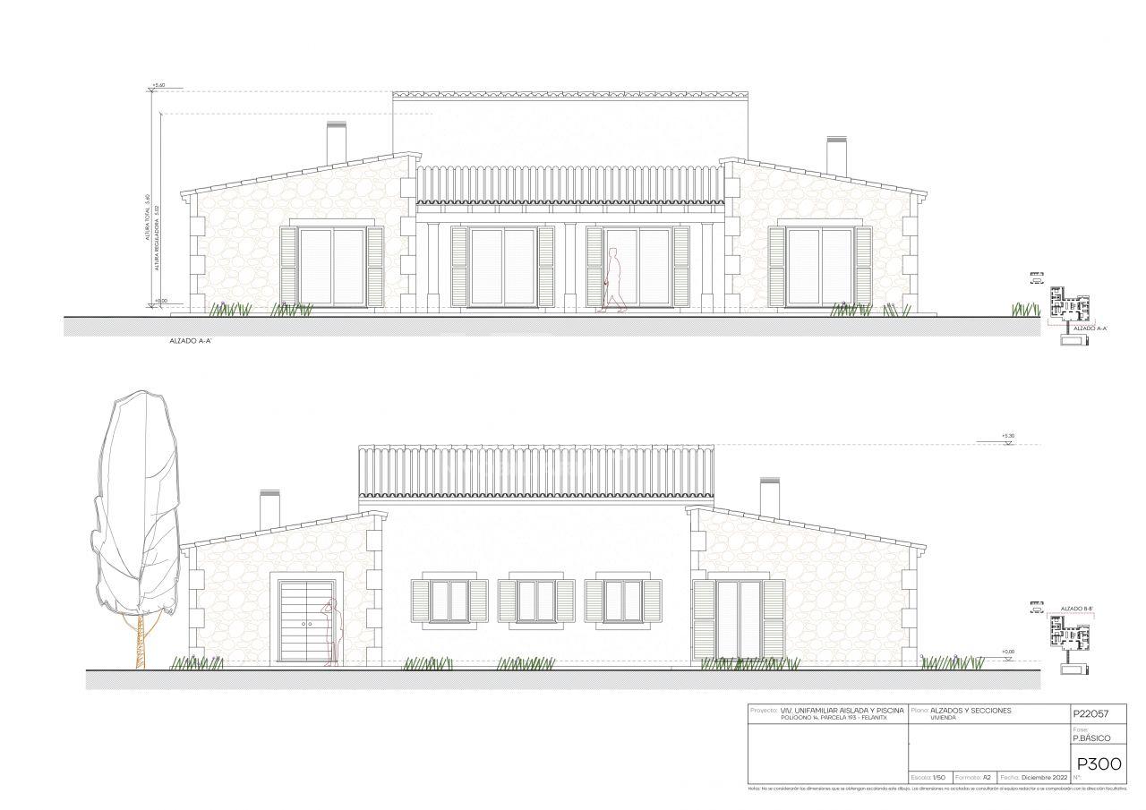 Das genehmigte Projekt sieht eine moderne, stilvolle Villa auf einer Ebene vor, die mediterrane Architektur mit zeitgemäßem Wohnkomfort verbindet.
