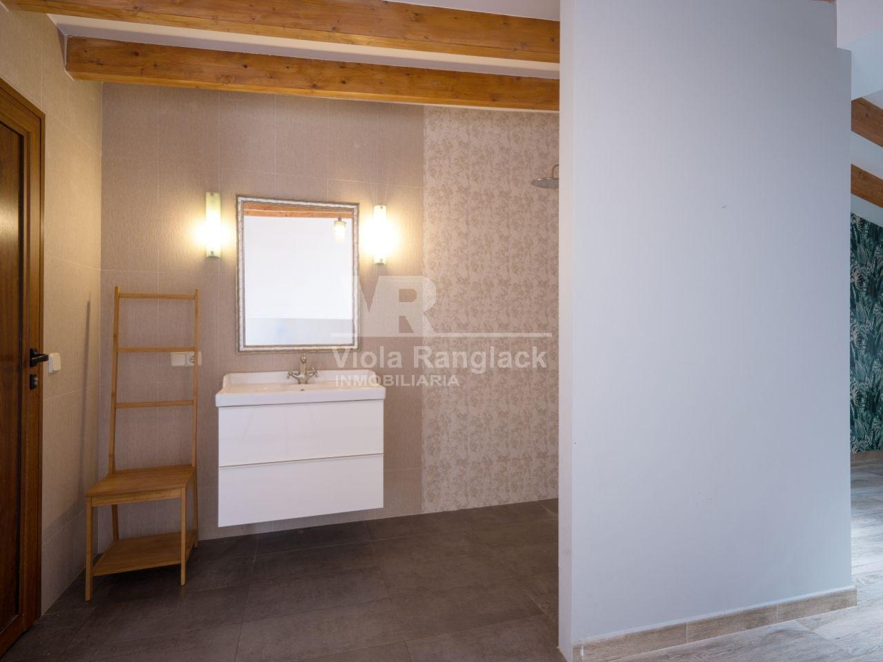 The main house offers three spacious bedrooms, two of them with en-suite bathrooms. The master bedroom also features a wardrobe and direct access to the patio. In total, the property comprises four bedrooms and three bathrooms, as well as several additional rooms and terraces that provide great versatility.